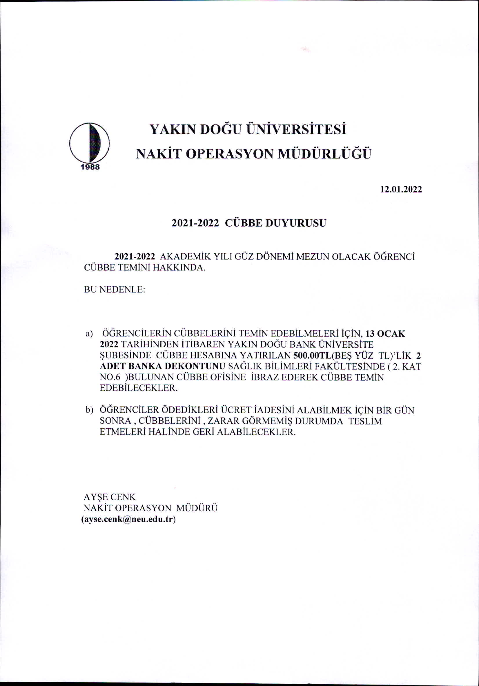 CÜBBE DUYURUSU!